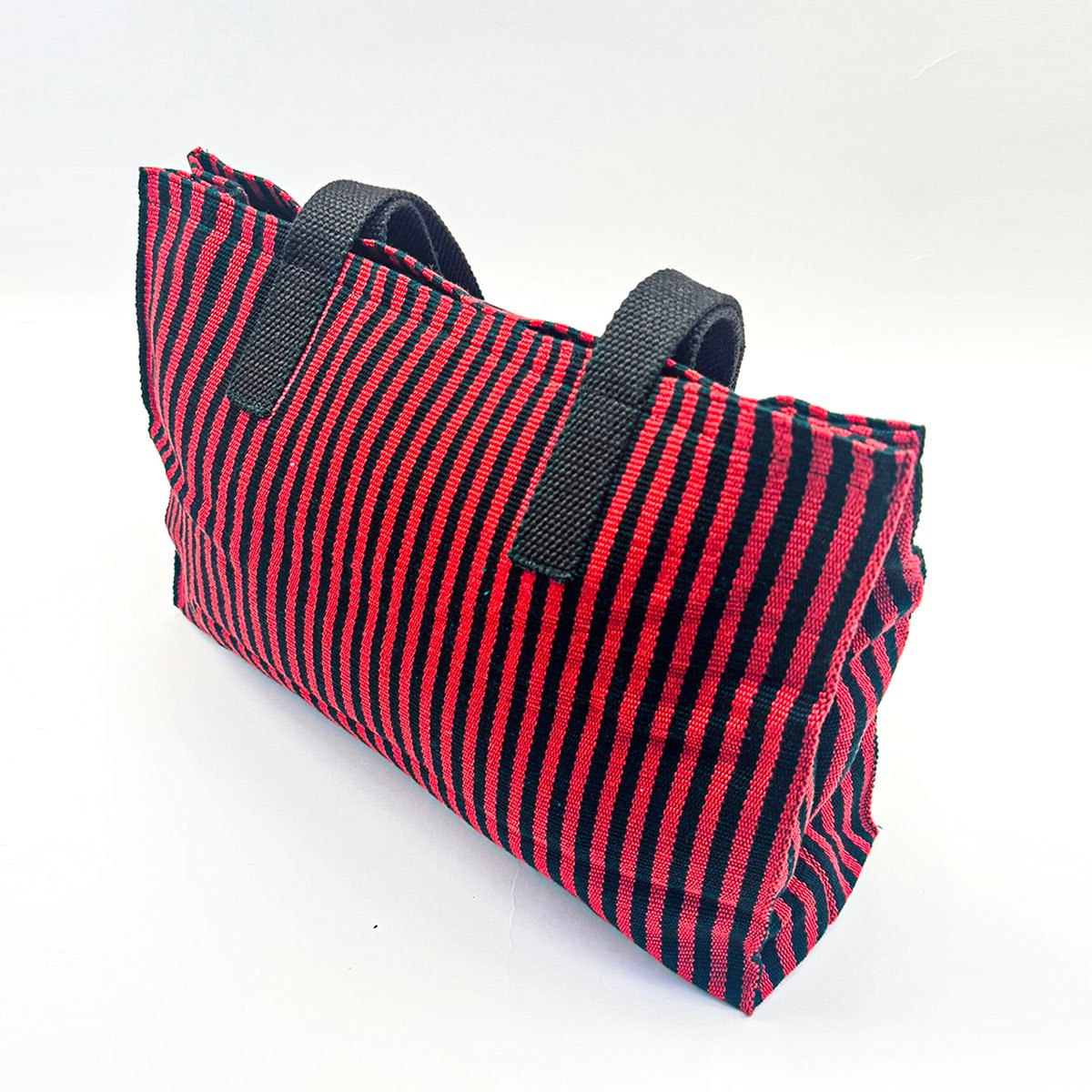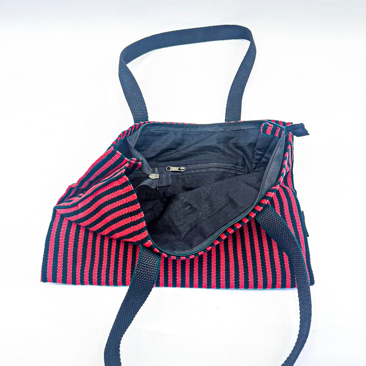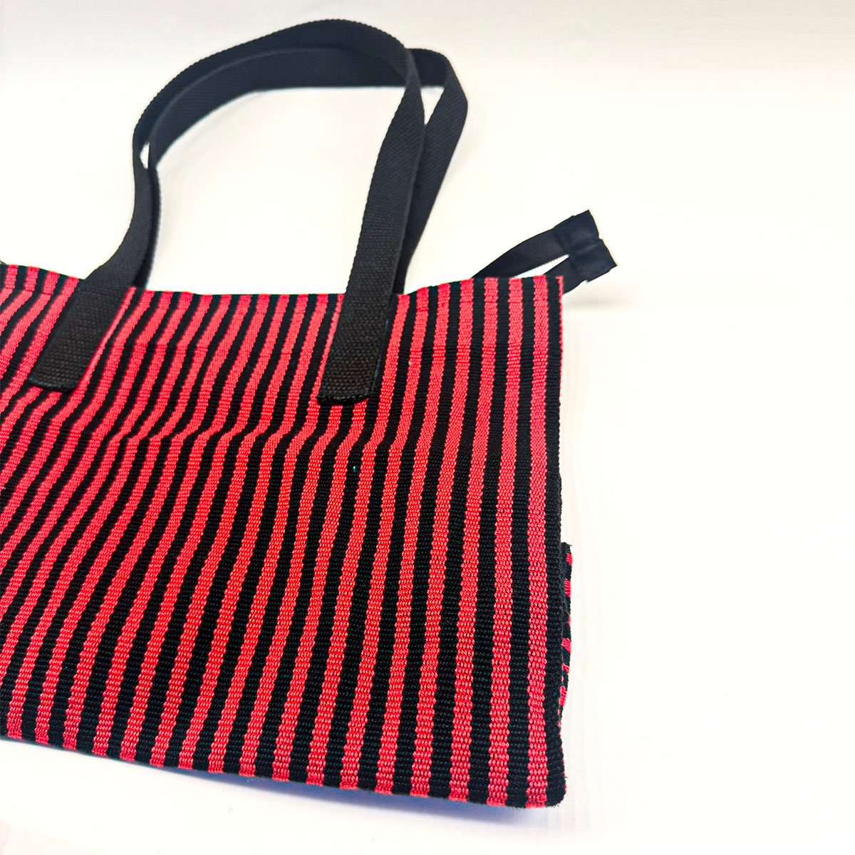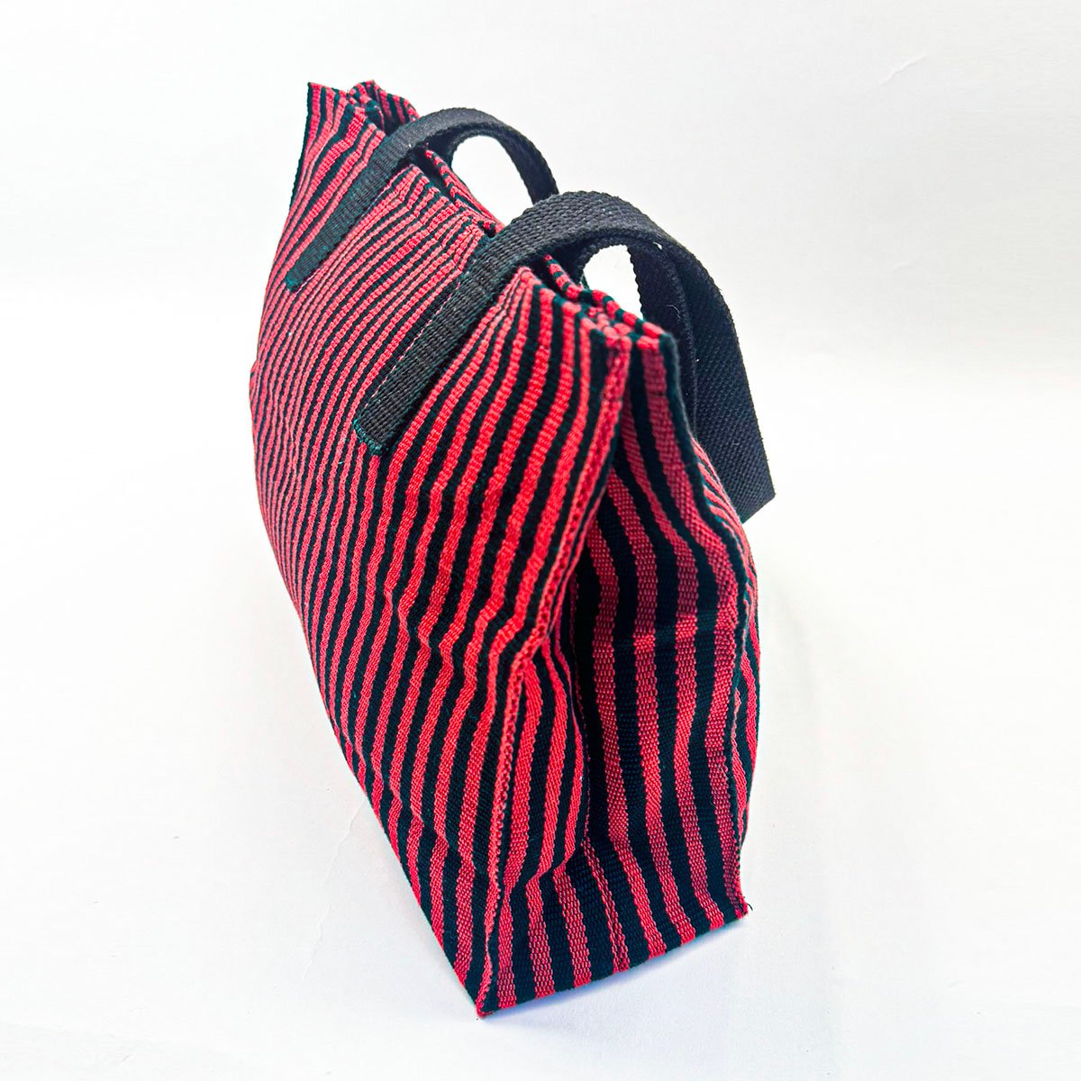 Tote Bag, handwoven on a traditional backstrap loom, this striking piece celebrates the enduring weaving heritage of Nagaland. Featuring bold vertical stripes in red and black, it is contemporary yet timeless. Crafted from 100% cotton, it offers both structure and flexibility perfect for everyday use. Rooted in tradition yet reimagined for the present, this handwoven tote reflects generations of skilled craftsmanship and the evolving creativity of Naga women weavers, where heritage meets contemporary style.